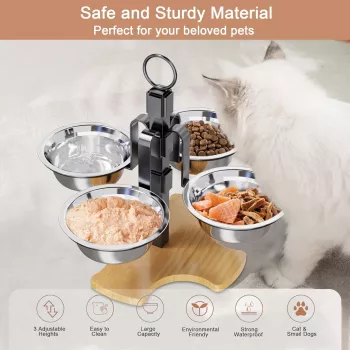 Adjustable Elevated Pet Feeding Station with 4 Stainless Steel Bowls