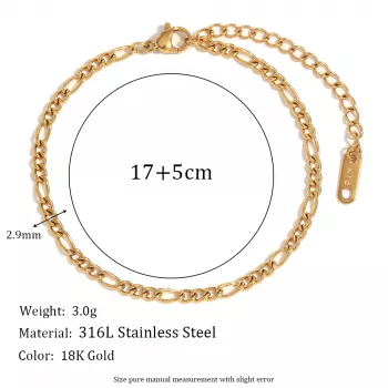 Elegant Figaro Twist Chain Bracelet 18K Gold Plated Stainless Steel